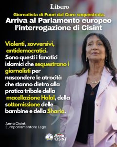 Il riferimento al sequestro dei giornalisti riguarda la giornalista di “Fuori dal Coro” che – in Francia – è stata tenuta prigioniera, per un’ora, in una macelleria Halal perché “si è permessa” di fare domande e porre dei dubbi.