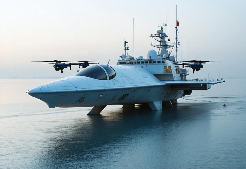 La “Sciamano Drone Carrier”: La Marina Militare italiana infatti, sta lavorando a un progetto per una nave dedicata al lancio e recupero di droni, finanziato dal Piano Nazionale di Ricerca Militare. - Questa nave è pensata per svolgere missioni di sorveglianza, intelligence e anche per saturare le difese nemiche tramite sciami di droni.