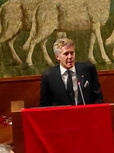 Il Principe davanti ai neo insigniti e ai componenti degli Ordini Cavallereschi a ranghi pressoché completi, ha rivolto un vibrante intervento rifacendosi alle origini delle istituzioni dinastiche e coinvolgendo i cavalieri nel perseguimento dell’impegno di solidarietà verso chi si trova nel bisogno. Finalità che ha sempre rappresentato un dovere, nel corso dei secoli dalla Real Casa di Savoia.