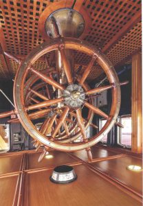 Foto 2 La timoneria manuale alternativa con ben quattro ruote a barre, necessarie per muovere e orientare meccanicamente la grande pala del timone