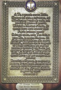 Foto 4 Immagine completa della preghiera del Marinaio scritta da Antonio Fogazzaro nel 1901; questa viene letta ogni volta che viene effettuato a poppa l’Ammaina bandiera in presenza dell’equipaggio