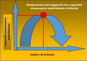 Sinteticamente riportato mediante una curva in un diagramma che mette in relazione la capacità economica individuale con l’indice di felicità conseguente si rende facilmente visibile quanto egli sostiene sia noto da tempo.