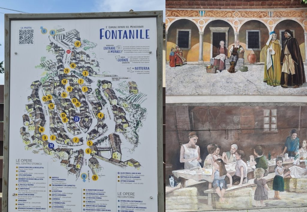 Tra i murales significativi, oltre a “Il Fosso”, ci sono: “La Gita in bicicletta 1912: Svizzera e ritorno”, che raffigura un’impresa di cicloturismo di cinque abitanti; scene di vita contadina come “Spannocchiando il granoturco”, “La trebbiatura” e “La vendemmia”; “Battaglia di Aleramo”, che evoca uno scontro tra Aleramici e Saraceni nel 936; “Aldo Pesce: uno di noi”, un omaggio a un campione di “Palla a pugno” (pallone elastico) originario di Fontanile.