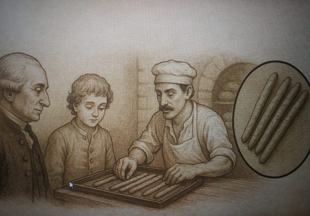 Uno degli aneddoti più noti riguarda Napoleone Bonaparte, che nel suo passaggio in Italia scoprì i grissini torinesi e se ne innamorò al punto da soprannominarli les petits bâtons de Turin. Secondo alcune cronache, pare che il generale francese avesse istituito un servizio di staffetta per riceverli freschi a Parigi: una sorta di “grissino-express” ante litteram.
